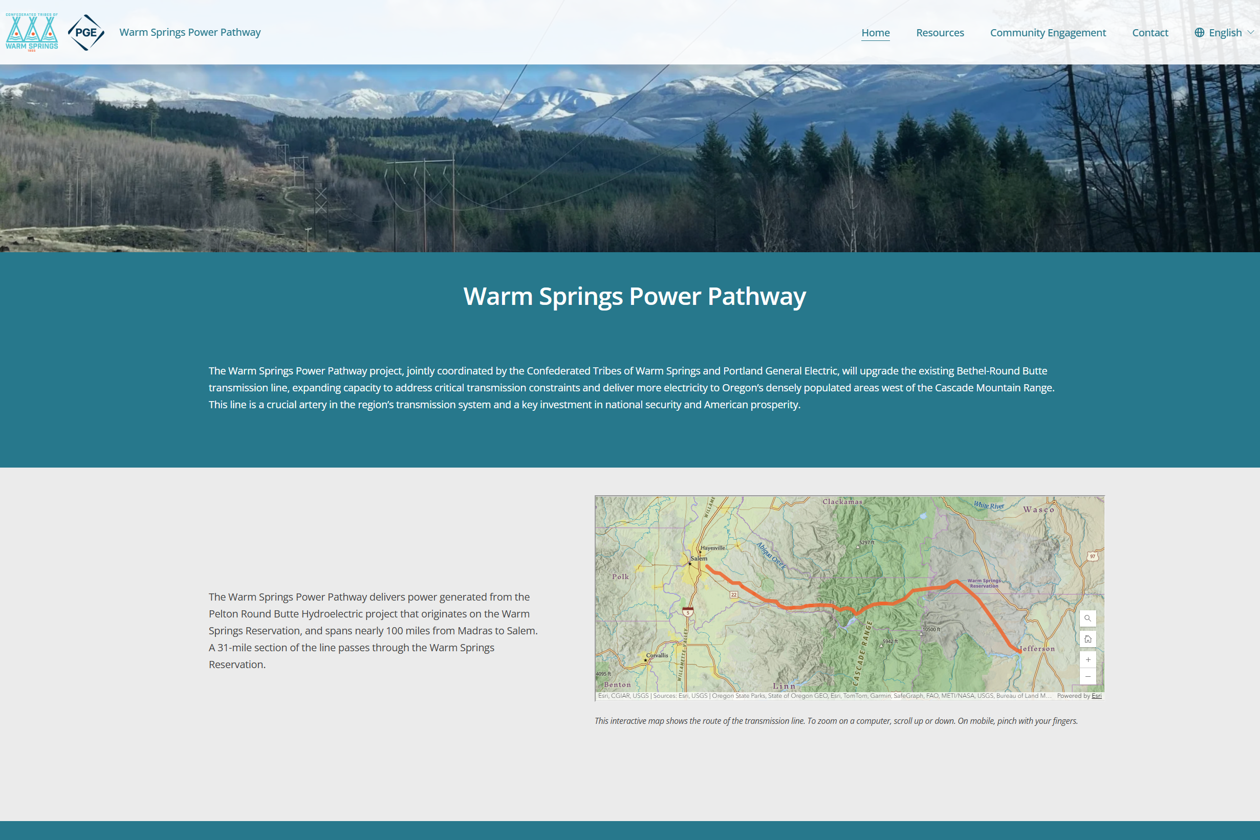 The Warm Springs Power Pathway website was created to support early and sustained public engagement for a technically complex transmission line project. The site serves as a centralized, accessible source of information designed to explain project impacts in plain language while supporting bilingual access and long-term maintainability.